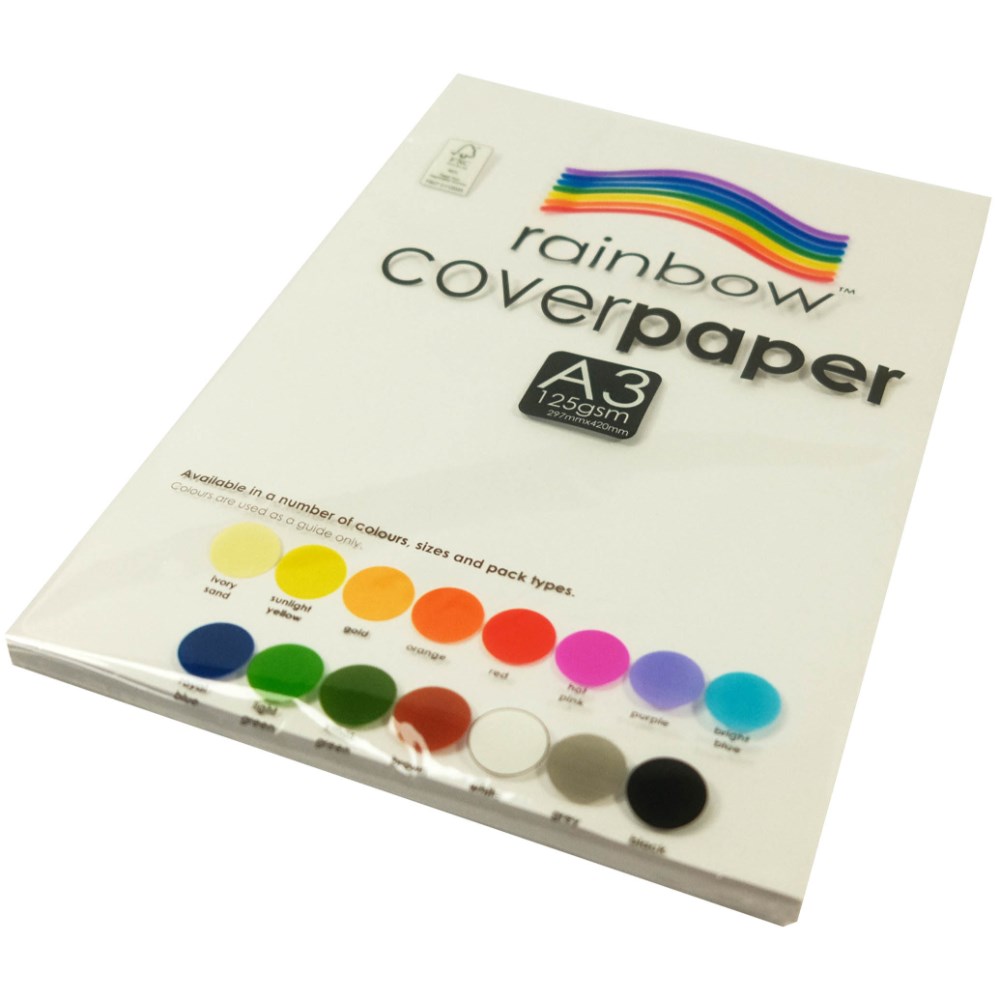 RAINBOW COVER PAPER A3 125GSM WHITE 100 SHEETS