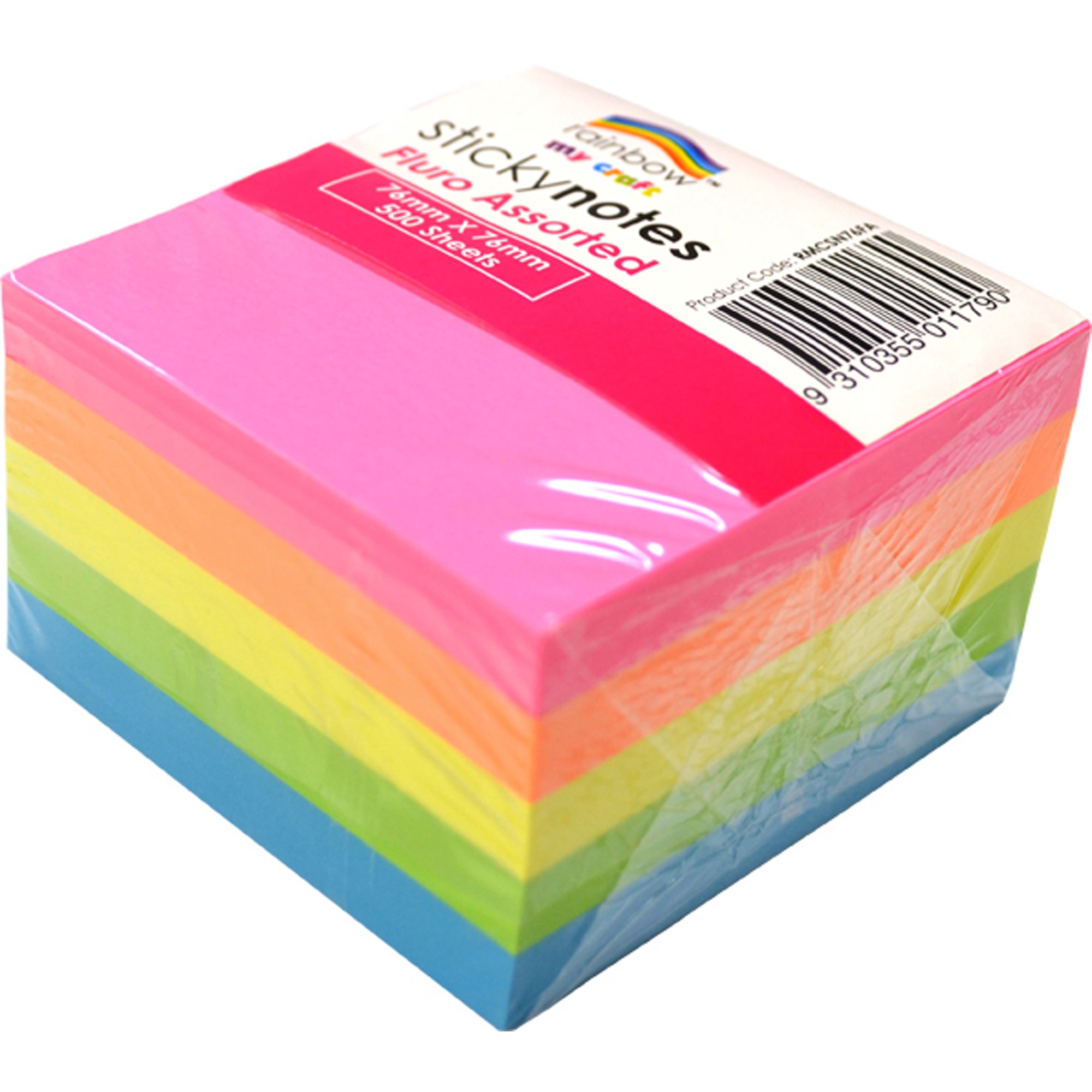 RAINBOW MY CRAFT STICKY NOTES 76 X 76MM FLURO ASSORTED 500 SHEETS