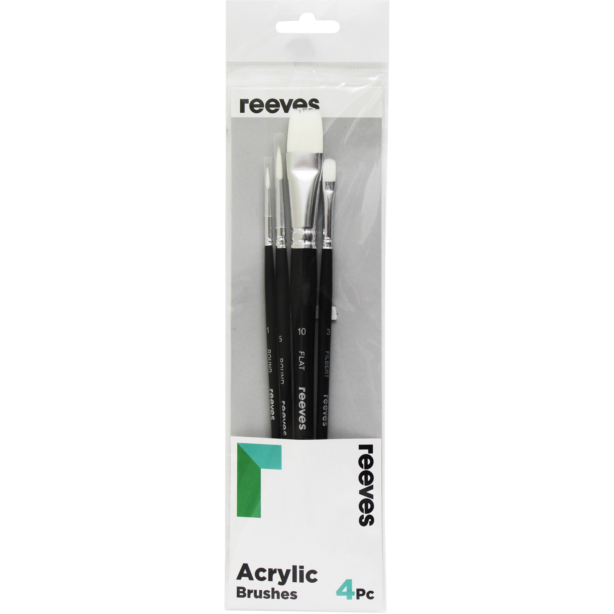 REEVES ACRYLIC BRUSHES SHORT HANDLE SET OF 4