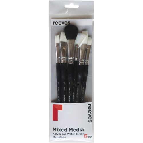 REEVES MIXED MEDIA BRUSHES SHORT HANDLE SET OF 6