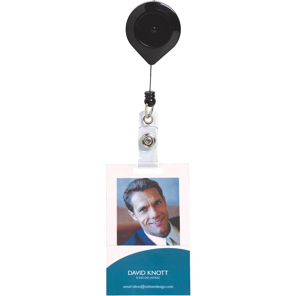 Used for carrying security and identification cards. Attach to clothing to keep cards safe and on hand at all times. Clip back is easily attached and removed from clothing. Nylon retractable cord effortlessly pulls badge towards card reader without having to remove your card. Extends up to 94cm.