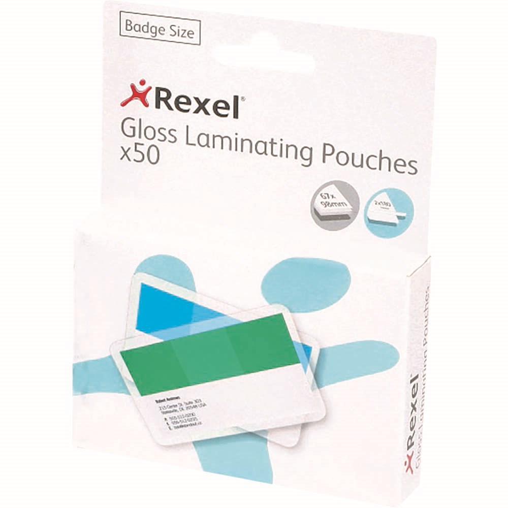 REXEL LAMINATING POUCHES BADGE CARD 67 X 98MM 180 MICRON GLOSS PACK OF 50