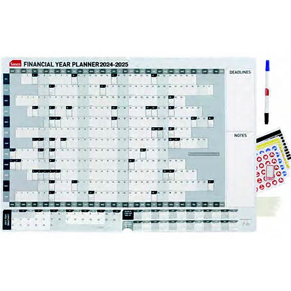 SASCO FINANCIAL YEAR WALL PLANNER 870 X 610MM YEAR TO VIEW GREY