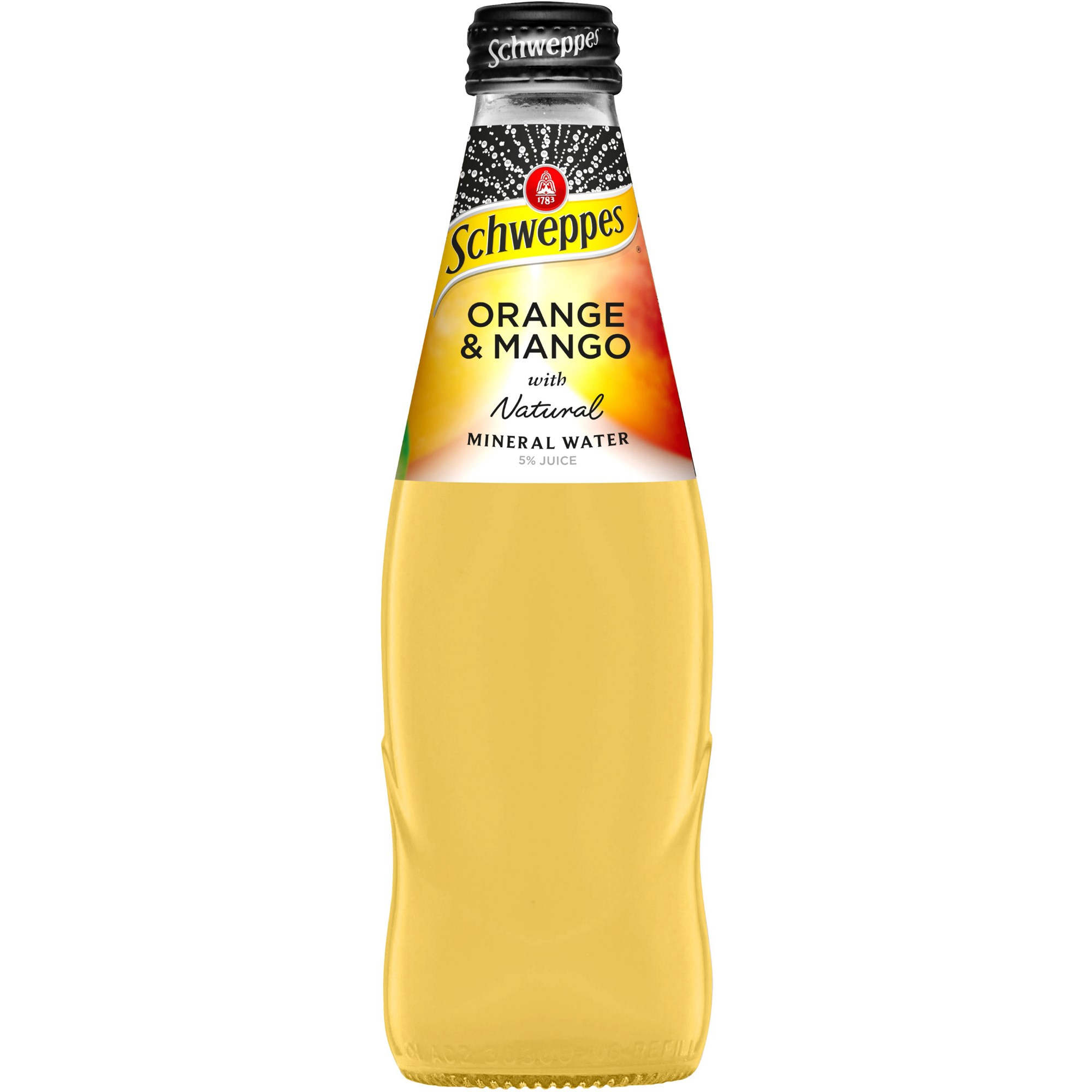 SCHWEPPES ORANGE/MANGO NATURAL MINERAL WATER 300ML GLASS BOTTLE PACK OF 24