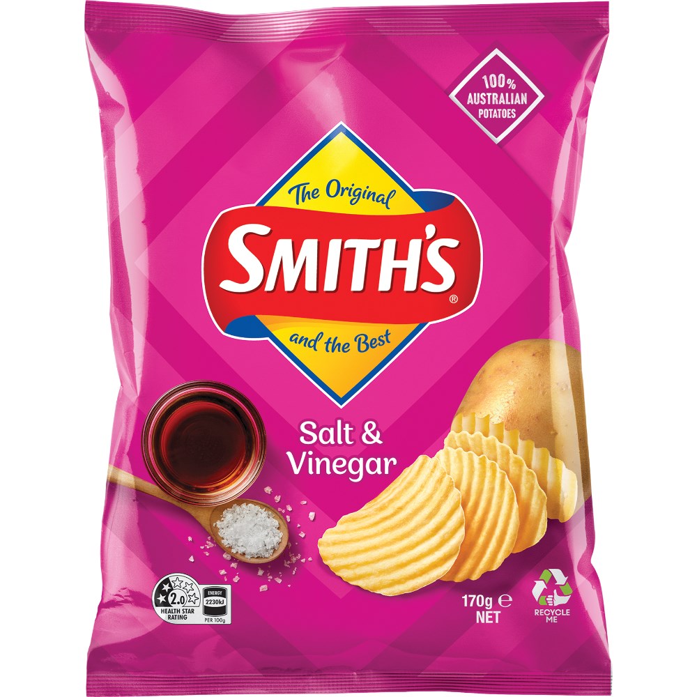 SMITHS CRINKLE CUT POTATO CHIPS SALT AND VINEGAR 170G