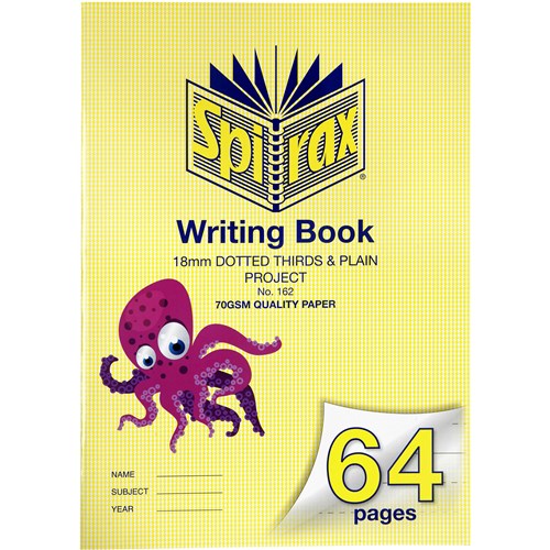SPIRAX 162 WRITING BOOK 335 X 240MM 64 PAGE 18MM DOTTED THIRDS AND PLAIN PROJECT