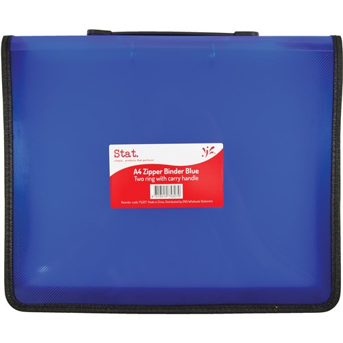 STAT A4 2R ZIPPER BINDER WITH HANDLE 25MM BLUE AND CLEAR