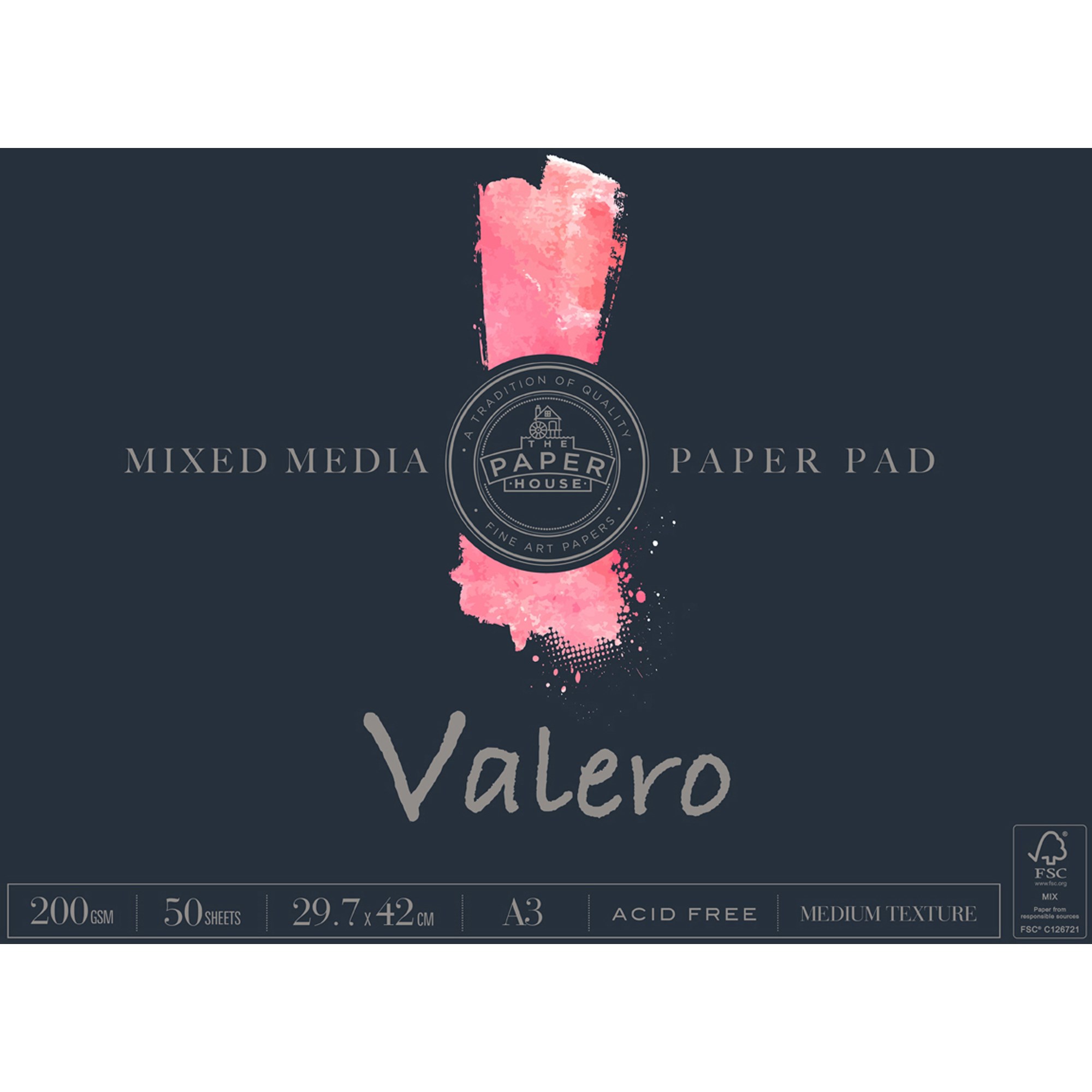 THE PAPER HOUSE VALERO PAD A3 200GSM MIXED MEDIA 50 SHEET