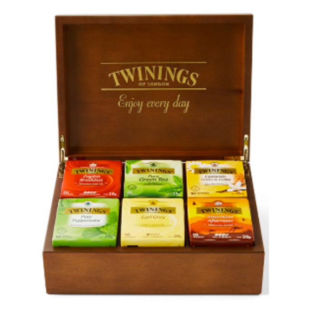 TWININGS TEA CHEST 6 COMPARTMENT BROWN