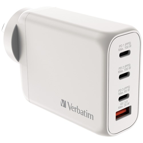 VERBATIM GAN 4 PORT USB A/C CHARGER 100W WHITE