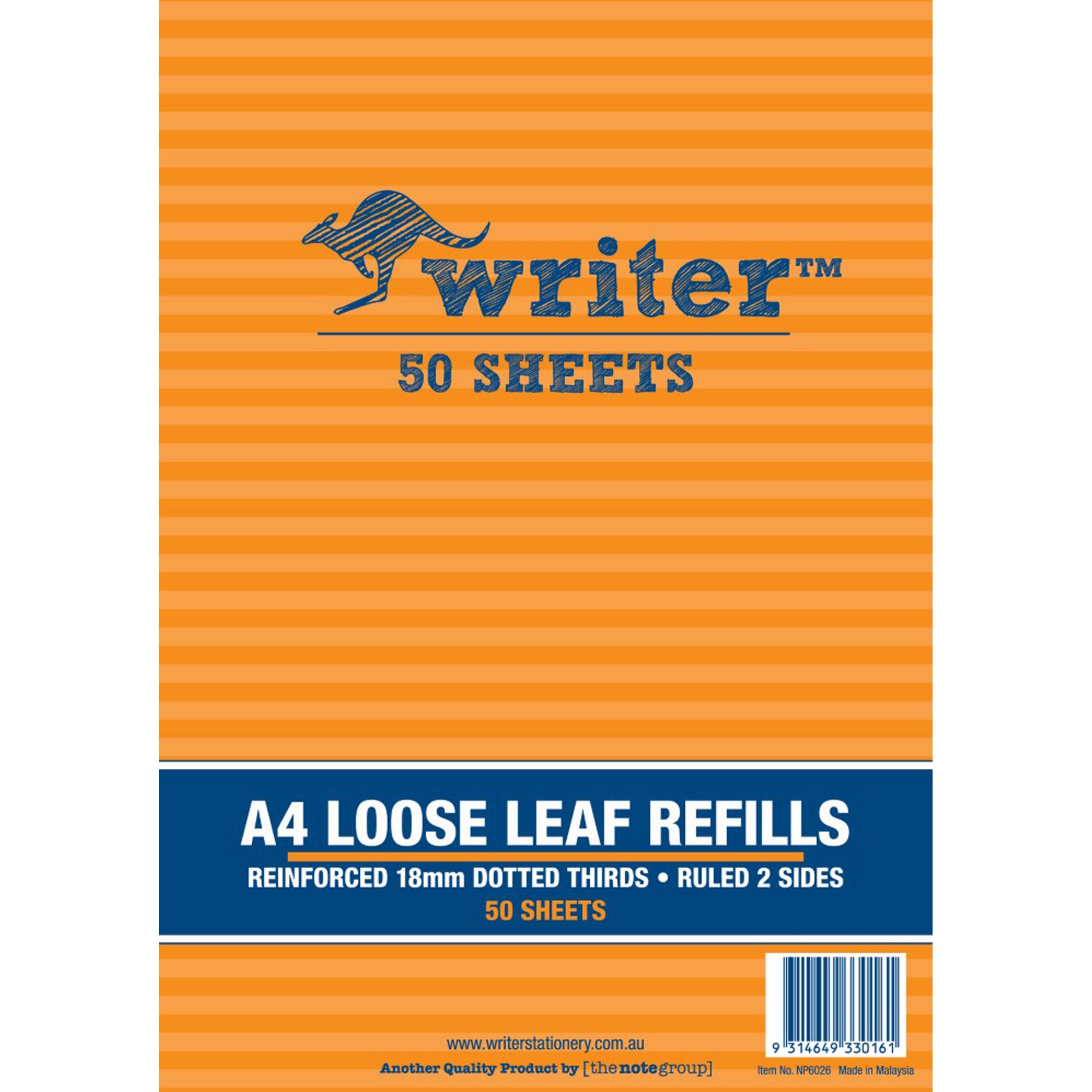 WRITER BINDER REFILLS A4 18MM DOTTED THIRDS PACK OF 50