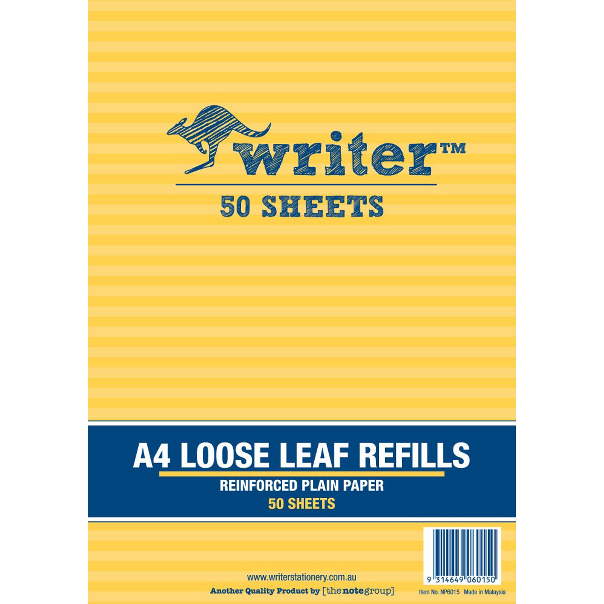 WRITER BINDER REFILLS A4 PLAIN REINFORCED PACK OF 50