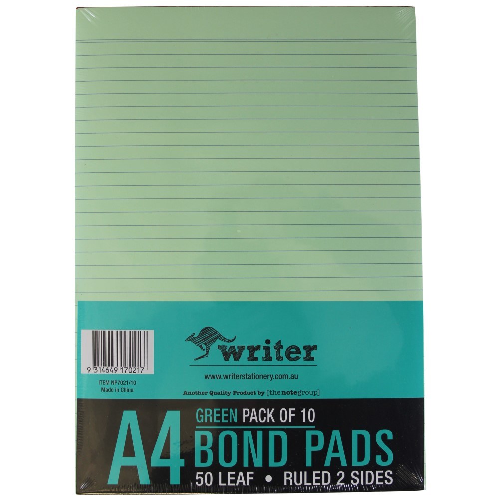 WRITER BOND PAD A4 DOUBLE SIDED RULED GREEN 50 SHEETS