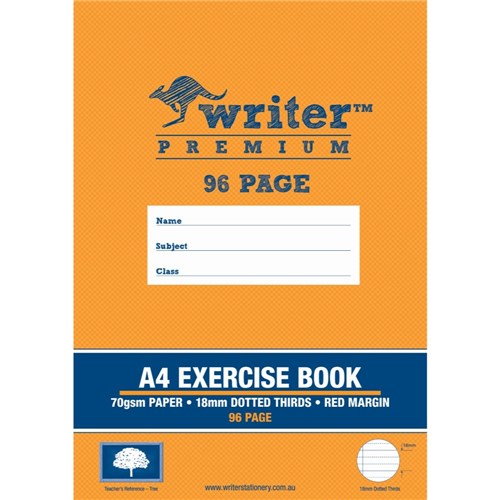 WRITER PREMIUM EXERCISE BOOK A4 96 PAGE 18MM DOTTED THIRDS RED MARGIN TREE
