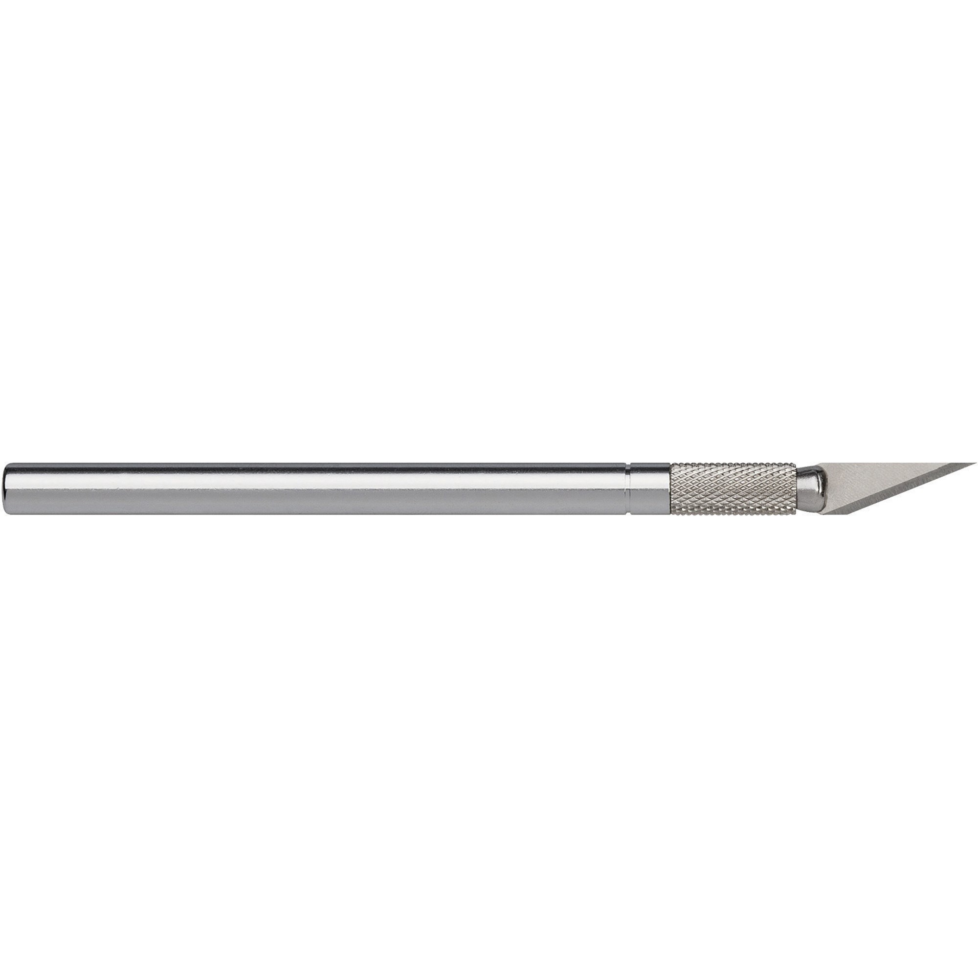 Fine sharp point blade for angle cutting. Aluminium handle. Replaceable blade.