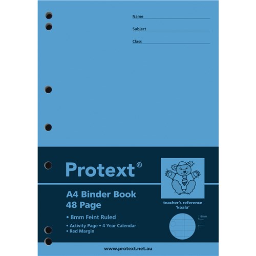 PROTEXT BINDER BOOK A4 7 HOLE 8MM RULED 70GSM 48 PAGE KOALA