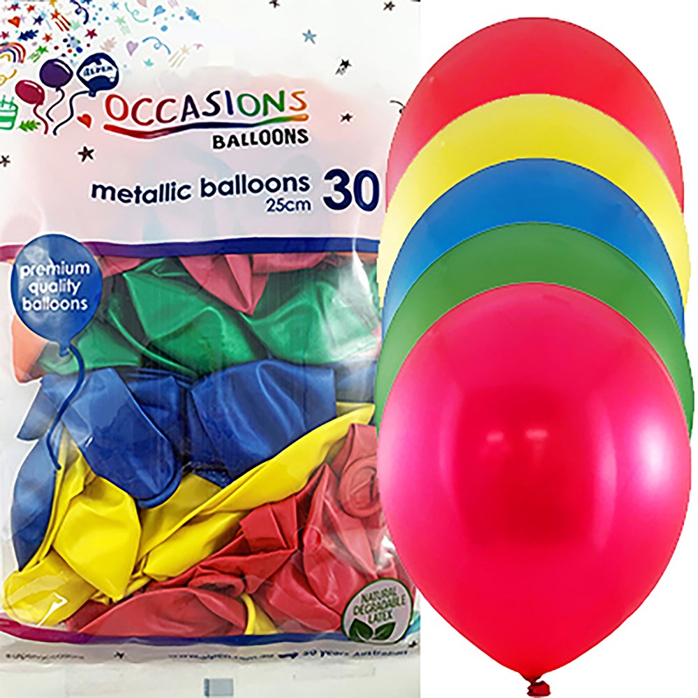 ALPEN OCCASIONS BALLOONS 25CM METALLIC ASSORTED COLOURS PACK OF 30