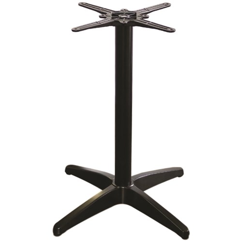 Suitable for indoor and outdoor commercial use. Top Plates: Cast aluminium top plates with 8 fastening points. Poles: 60DIA aluminium poles. Base: Cast aluminium 4 star base. Anodized aluminium finish. Base Span: 650mm diagonal. Height without top 720mm. Adjustable feet. Assembly required. Maximum Suitable Table Top Size: 800x800mm square 2 Year Manufacturer's Warranty. Delivery, installation and assembly charges may apply to furniture. Please enquire to confirm.