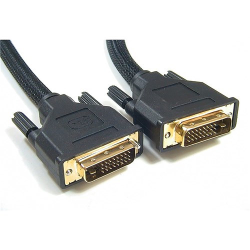 DVI-D Cable 5m - 24+1 pins Male to Male Dual Link 30AWG OD8.6mm Gold Plated RoHS. Provides enough bandwidth for resolutions up to 2560x1600 pixels, 30 AWG copper conductors are individually insulated in foam-polypropylene to minimize crosstalk, and ensure high speed, error-free transmission. 24-pin digital video cable with transfer rates up to 9.9 Gbps. Perfect for connecting digital displays and projectors to a PC. 1 Year Manufacturer's Warranty.