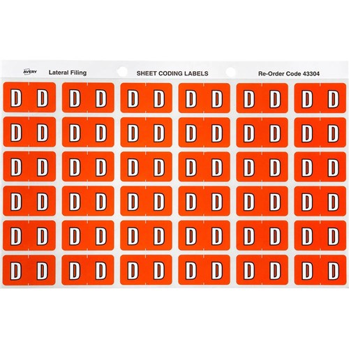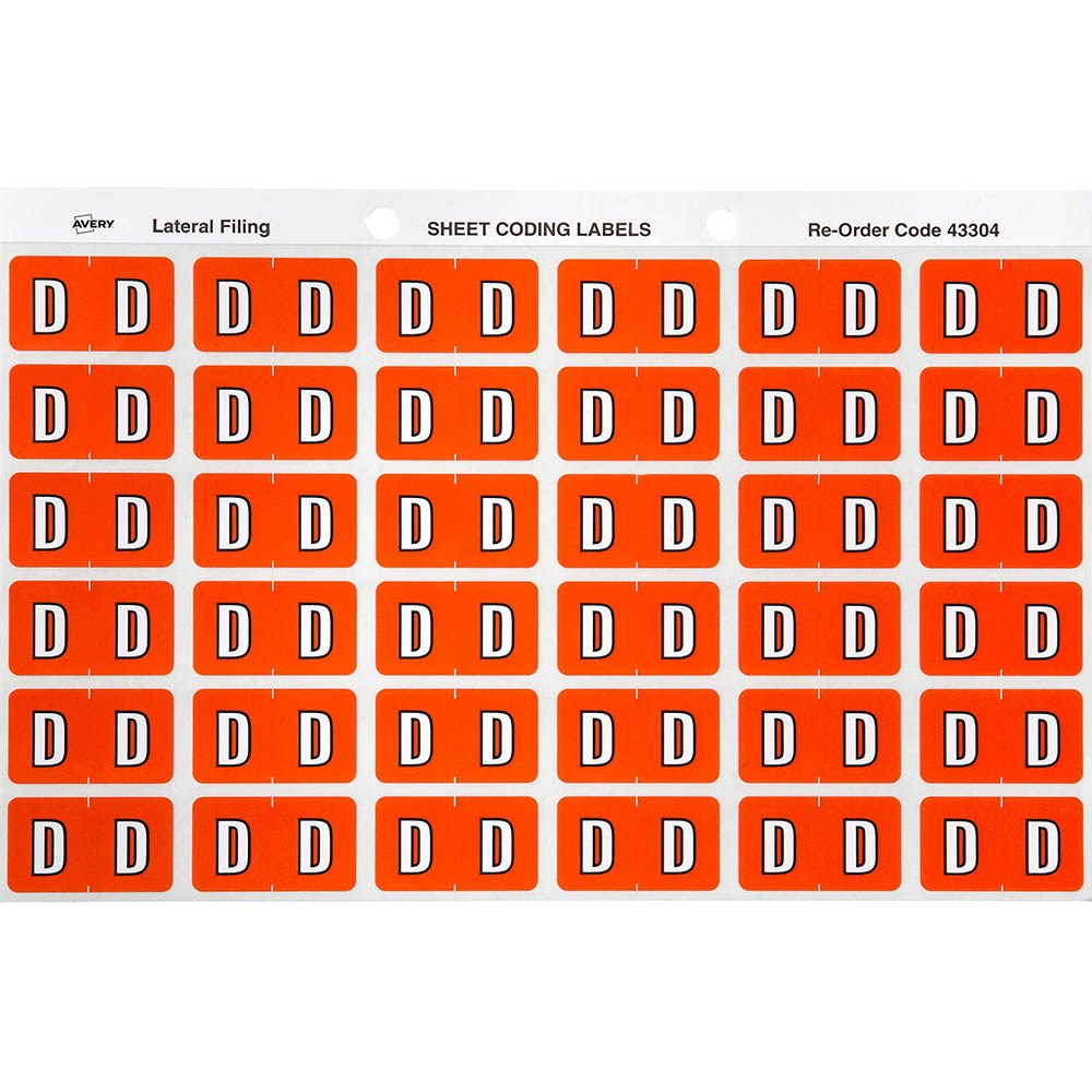 AVERY ALPHABET CODING LABEL D SIDE TAB 25X38MM DARK ORANGE PACK OF 180