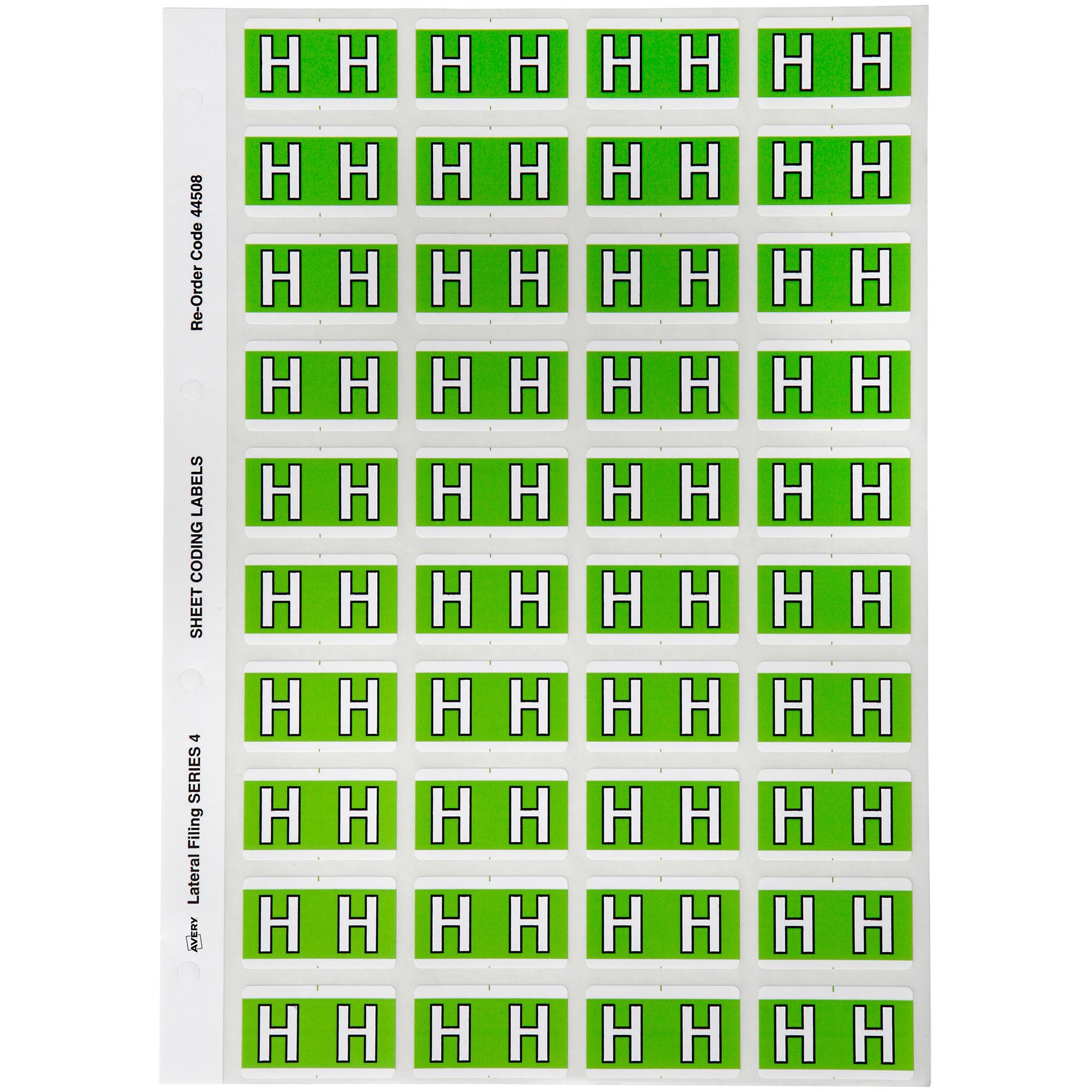 AVERY ALPHABET CODING LABEL H SIDE TAB 25X42MM LIGHT GREEN PACK OF 240