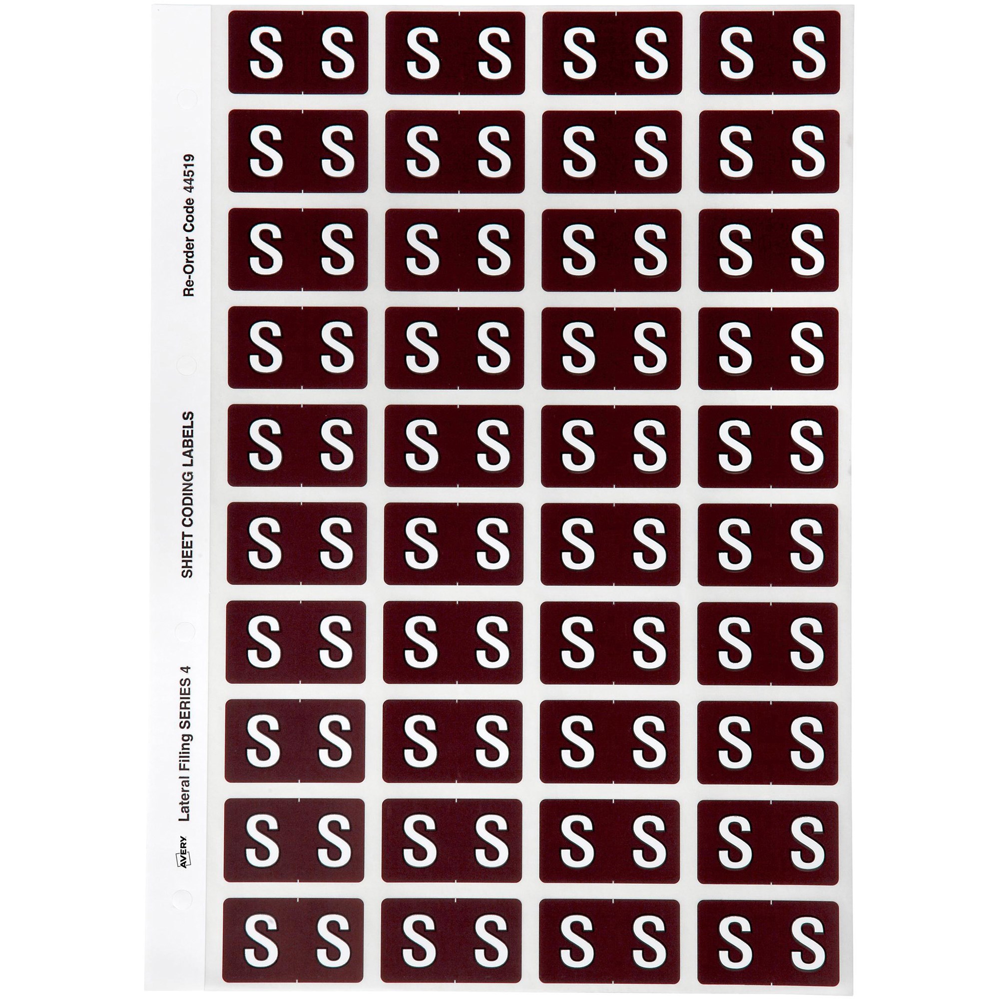 AVERY ALPHABET CODING LABEL S SIDE TAB 25X42MM BROWN PACK OF 240