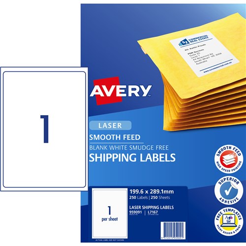 AVERY LASER SHIPPING LABELS WHITE L7167 199.6X289.1MM 1UP 250 LABELS 250 SHEETS
