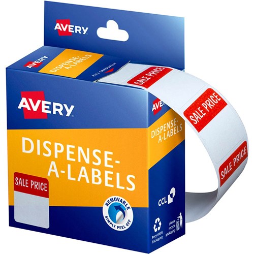AVERY REMOVABLE DISPENSER LABELS 24X30MM SALE PRICE RED ON WHITE PACK OF 400
