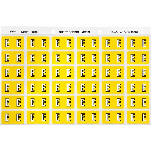 AVERY ALPHABET CODING LABEL E SIDE TAB 25X38MM YELLOW PACK OF 180