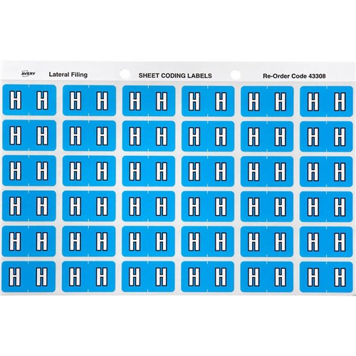 AVERY ALPHABET CODING LABEL H SIDE TAB 25X38MM BLUE PACK OF 180