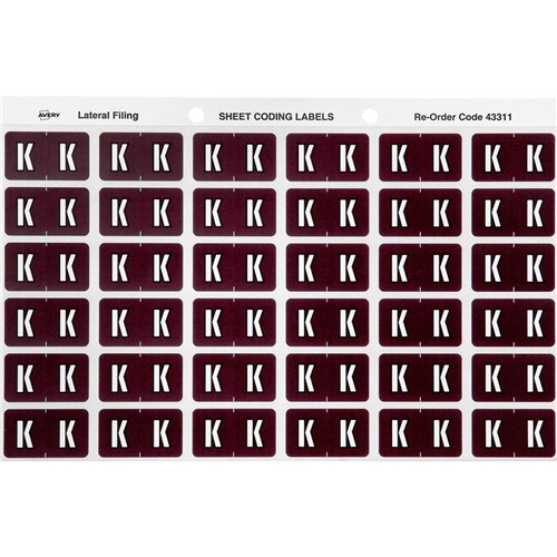 AVERY ALPHABET CODING LABEL K SIDE TAB 25X38MM BROWN PACK OF 180