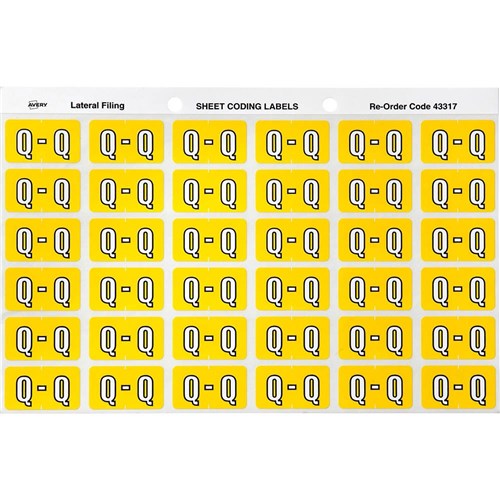 AVERY ALPHABET CODING LABEL Q SIDE TAB 25X38MM YELLOW PACK OF 180