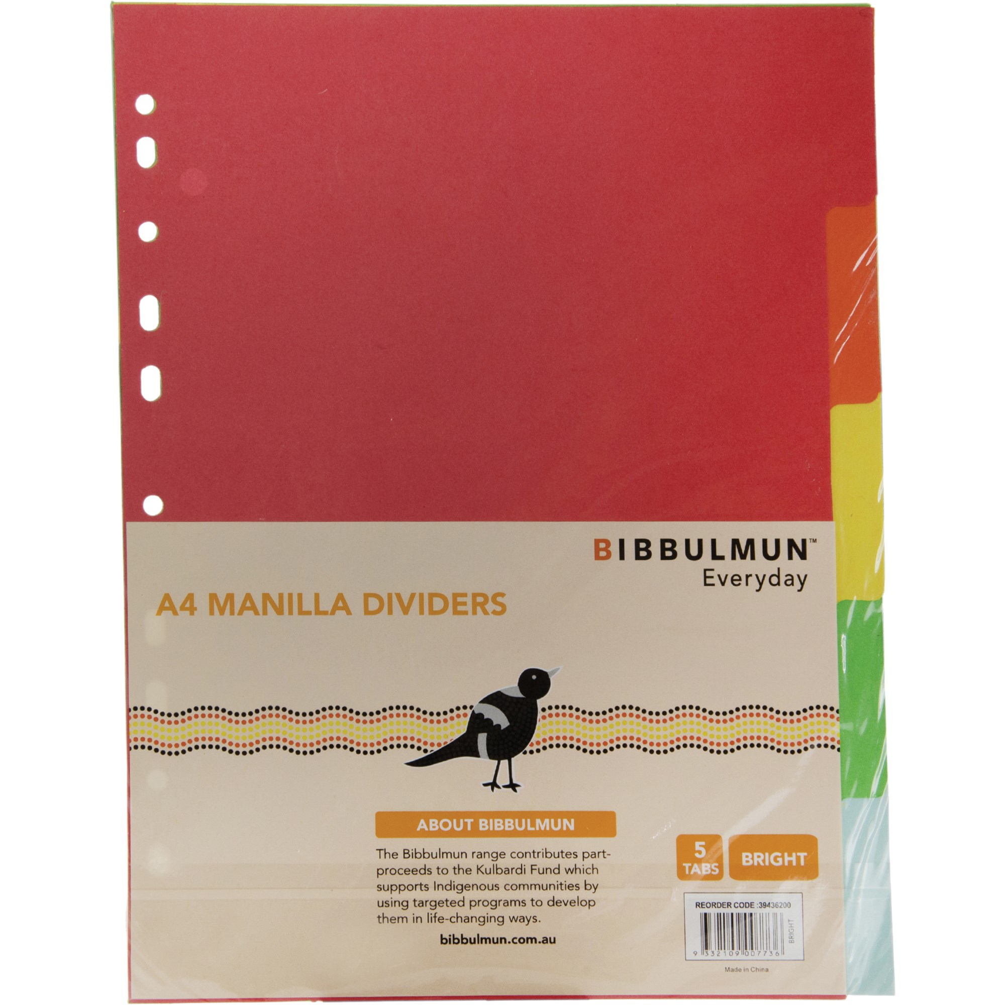 BIBBULMUN MANILLA DIVIDER A4 5 TAB PLAIN BRIGHT COLOURS