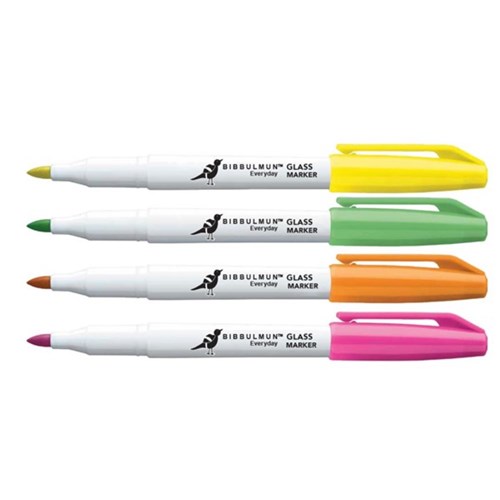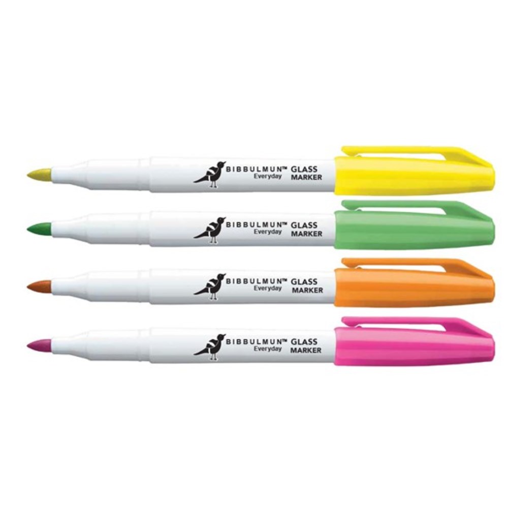 BIBBULMUN EVERYDAY GLASS MARKERS BULLET 1-2MM ASSORTED BOX OF 4