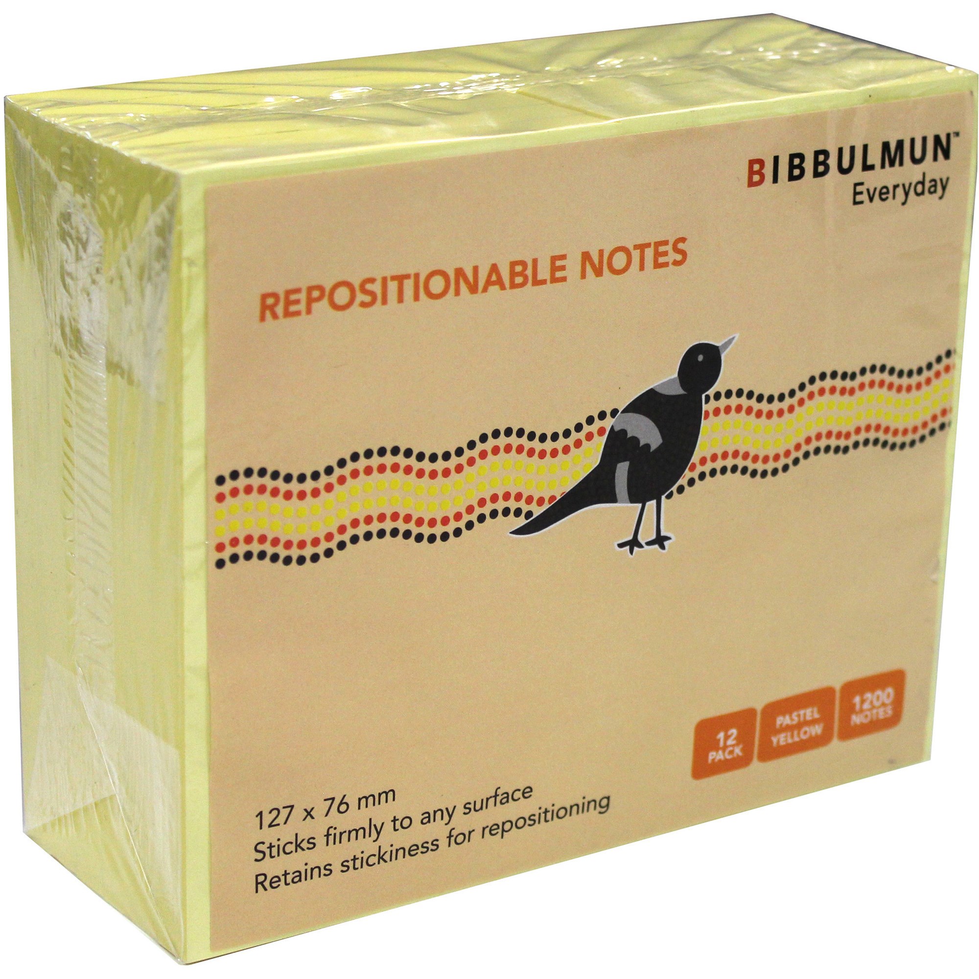 BIBBULMUN STICKY NOTES 76 X 127MM YELLOW 100 SHEETS PAD PACK OF 12