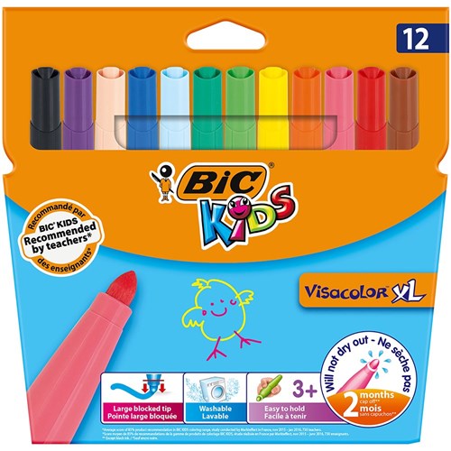 BIC KIDS VISACOLOR XL MARKERS BULLET 4.5MM CHUNKY GRIP PACK OF 12