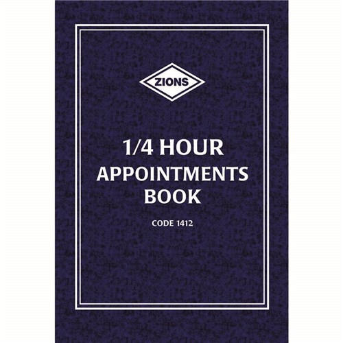 ZIONS 1412 APPOINTMENT BOOK A4 1/4HR 8AM TO 9PM 192 PAGE