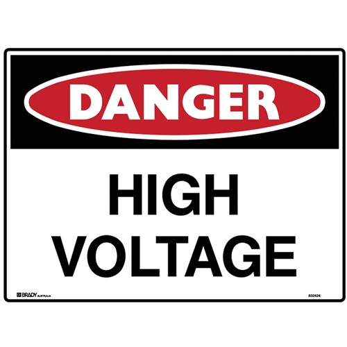 BRADY DANGER SIGN HIGH VOLTAGE 600W X 450MMH POLYPROPYLENE WHITE/RED/BLACK