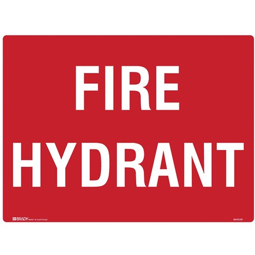 BRADY FIRE SIGN FIRE HYDRANT 600W X 450MMH POLYPROPYLENE WHITE/RED