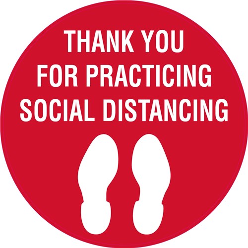BRADY FLOOR MARKER THANK YOU FOR PRACTICING SOCIAL DISTANCING 400MM RED/WHITE