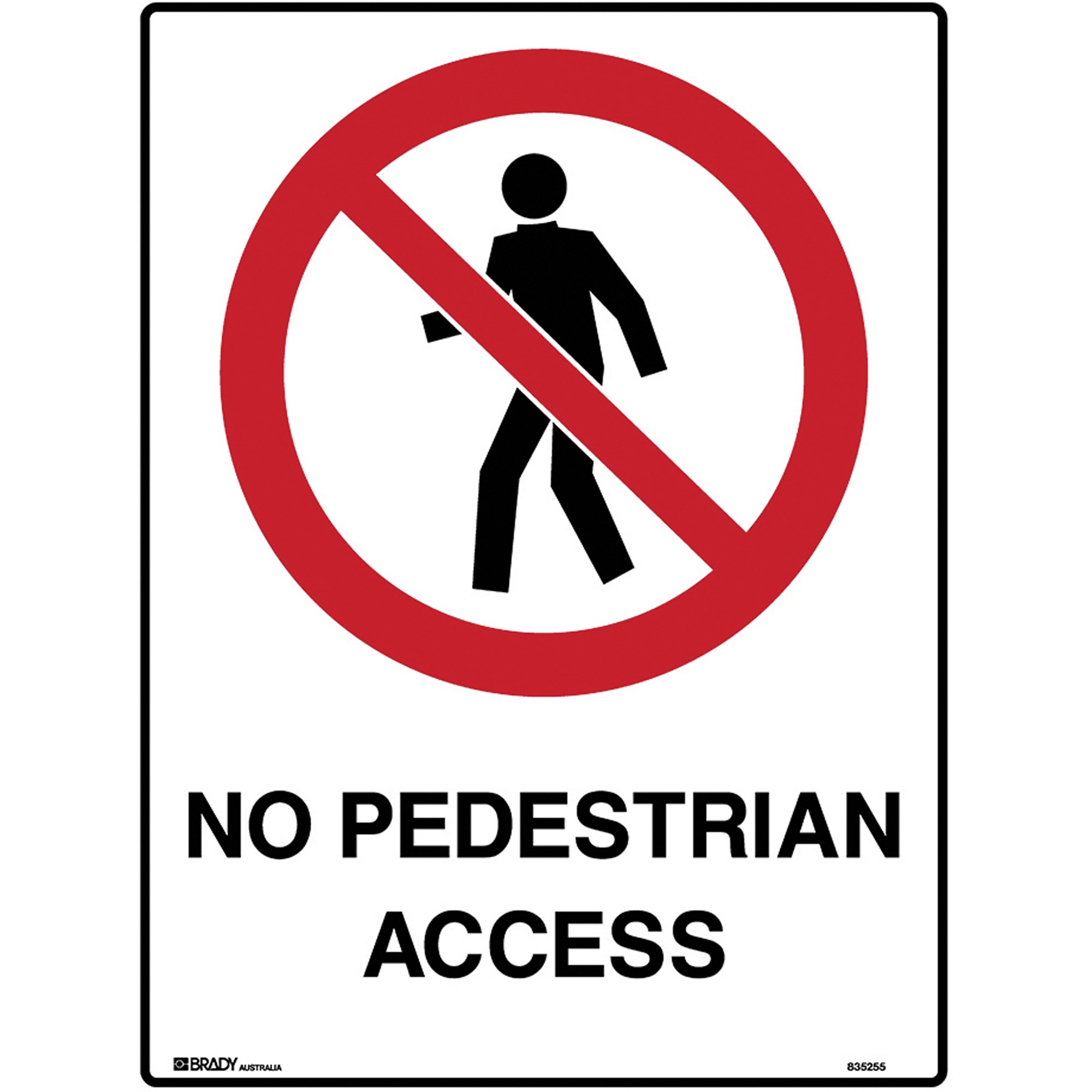 BRADY PROHIBITION SIGN NO PEDESTRIAN ACCESS 450 X 600MMH METAL WHITE/RED/BLACK