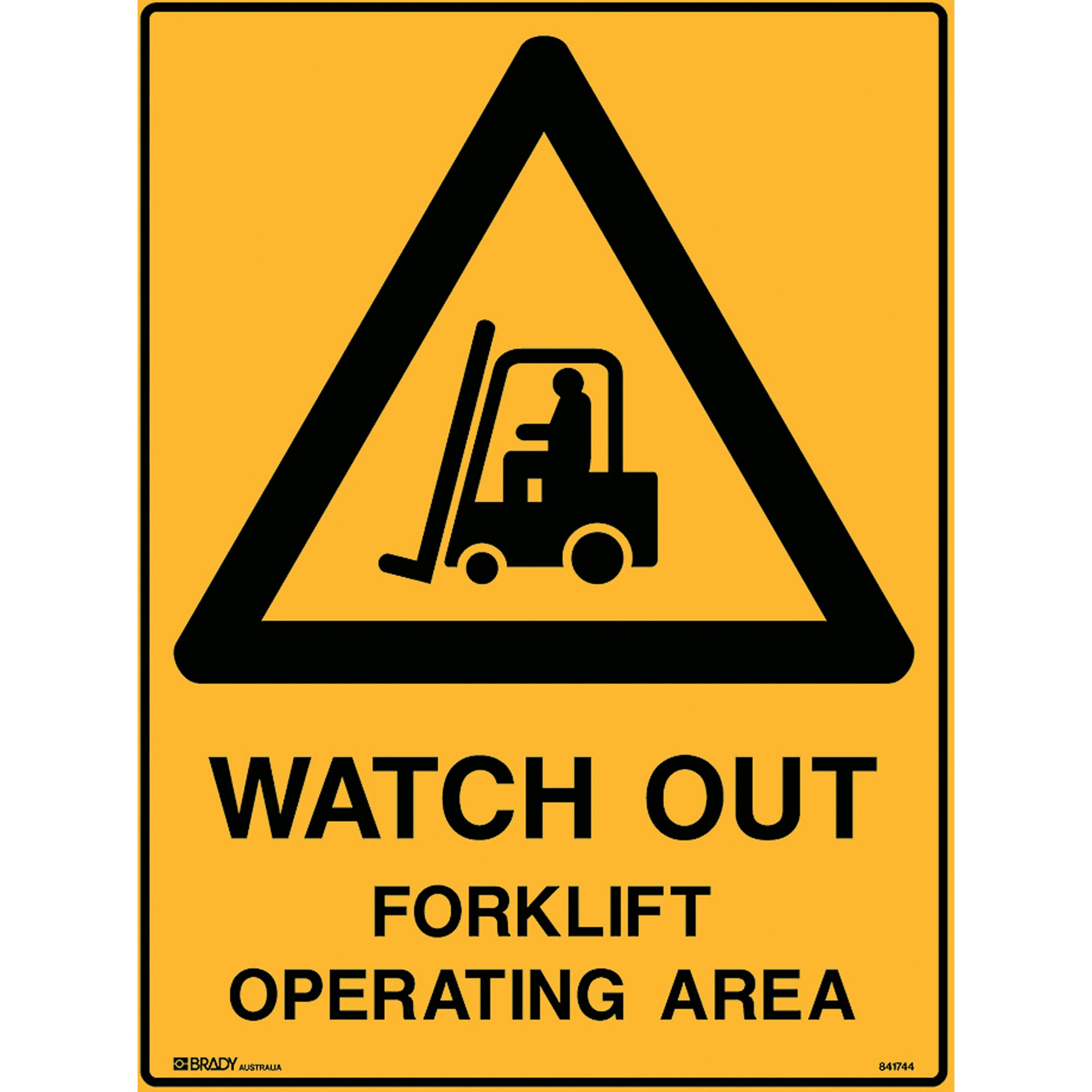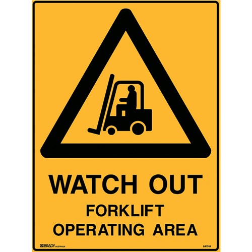 BRADY WARNING SAFETY SIGN WATCH OUT FORKLIFT OPERATING 450W X 600MMH POLY YELLOW/BLK