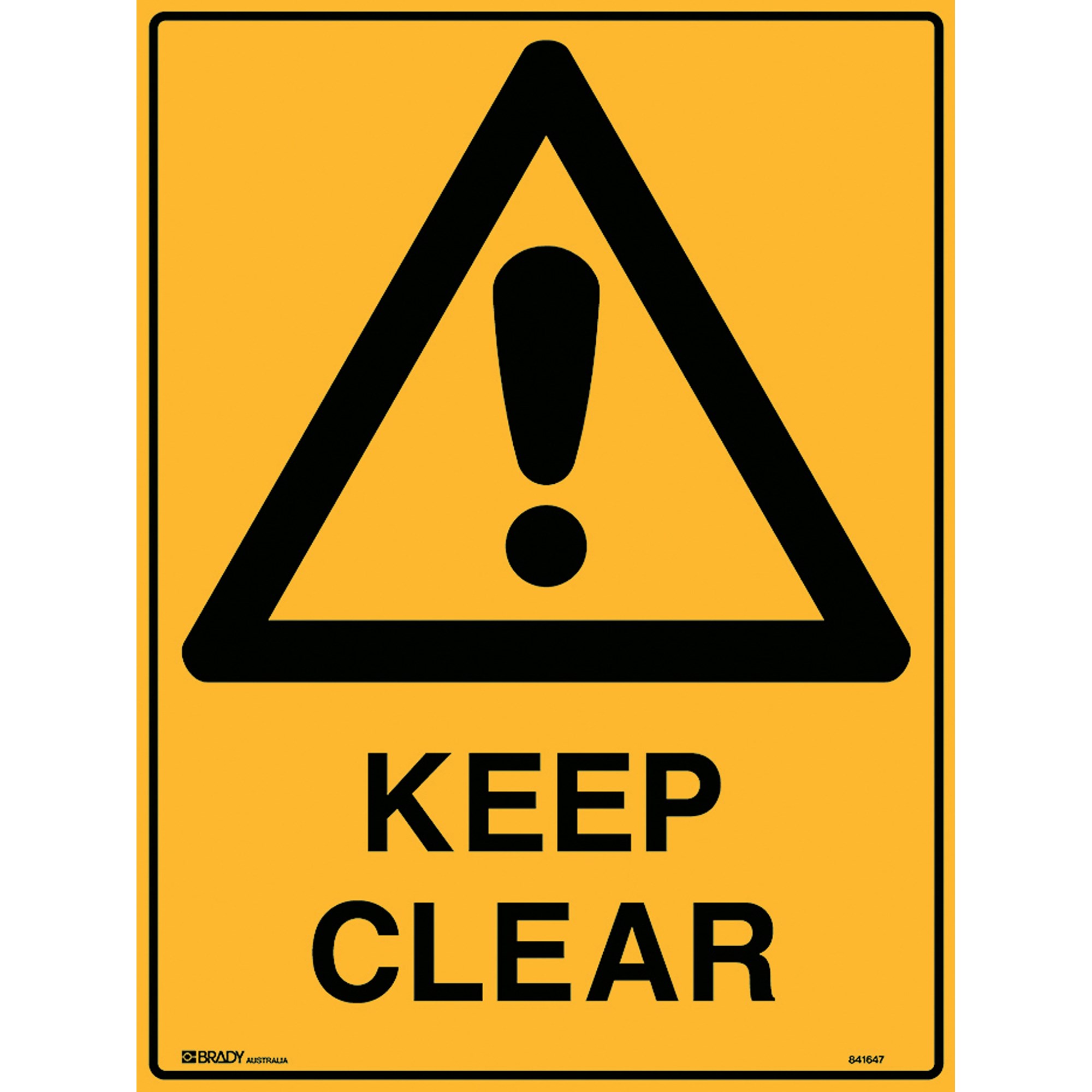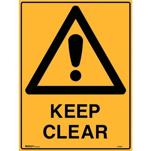 BRADY WARNING SIGN KEEP CLEAR 450W X 600MMH METAL YELLOW AND BLACK
