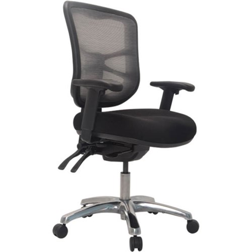BURO METRO MESH CHAIR POLISHED ALUMINIUM BASE WITH ARMS BLACK FABRIC SEAT MESH BACK