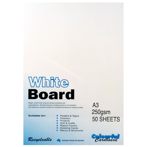 COLOURFUL DAYS WHITEBOARD A3 250GSM WHITE PACK OF 50