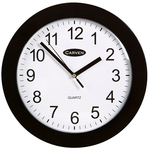 CARVEN WALL CLOCK 25CM DIAMETER BLACK FRAME