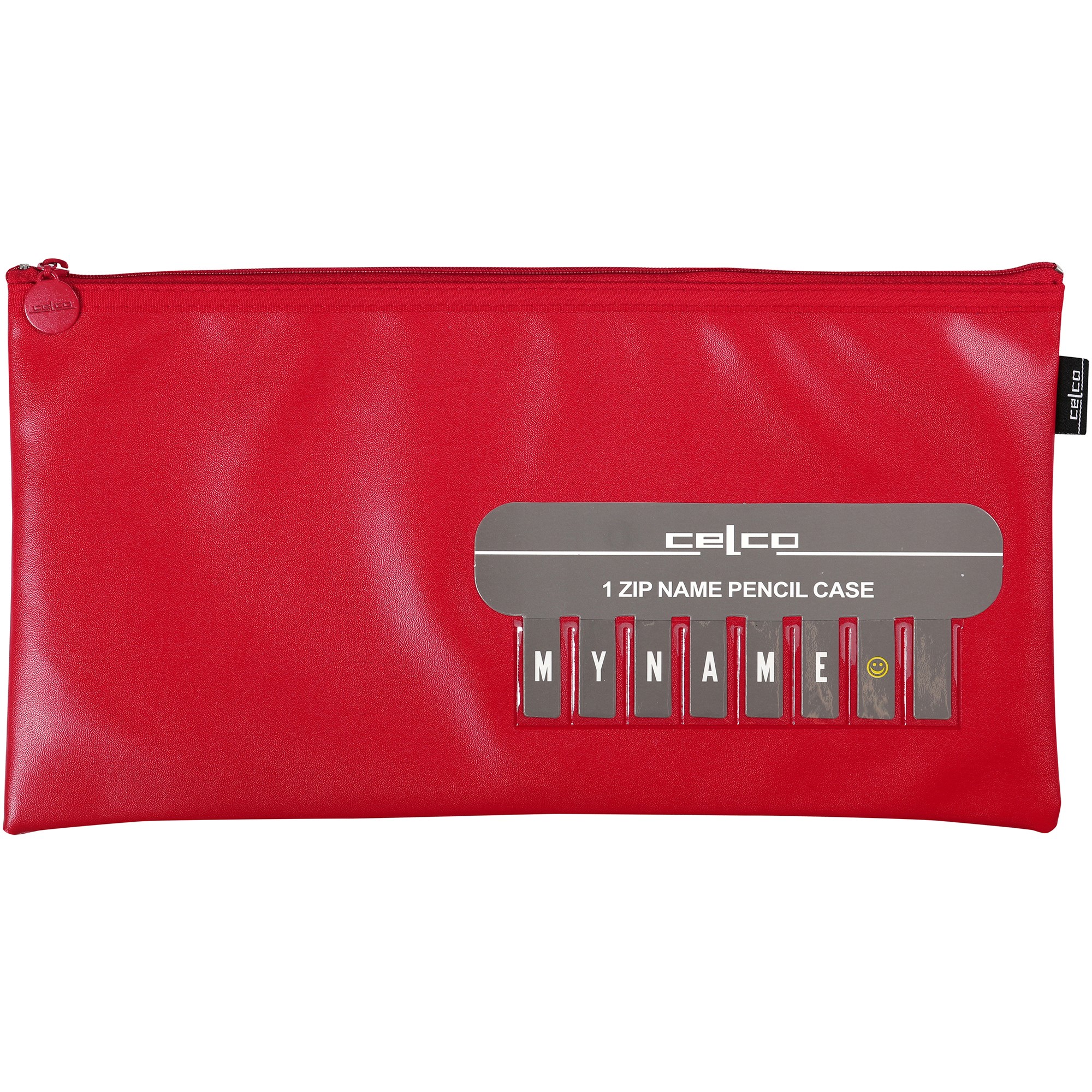 CELCO PENCIL CASE NAME SINGLE ZIP MEDIUM 338 X 174MM RED