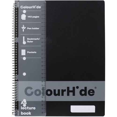 COLOURHIDE LECTURE BOOK A4 7 HOLE PUNCHED SIDE BOUND 140 PAGE BLACK