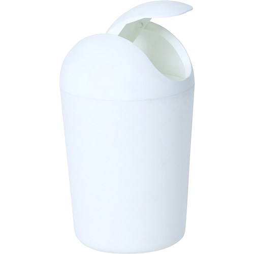 Handy lidded bin for bathroom, desk or work area. Swing lid to conceal waste. Made from durable PP plastic. Colour: Off white. Volume: 8 Litres. Dimensions: 200D x 350mmH with lid.