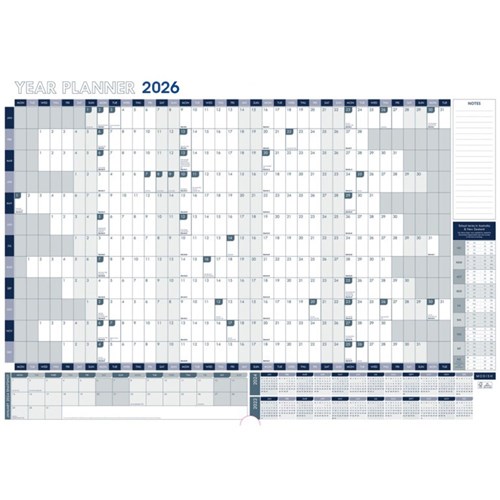 DATED WALL PLANNER 870 X 610MM YEAR TO VIEW WHITE AND BLUE